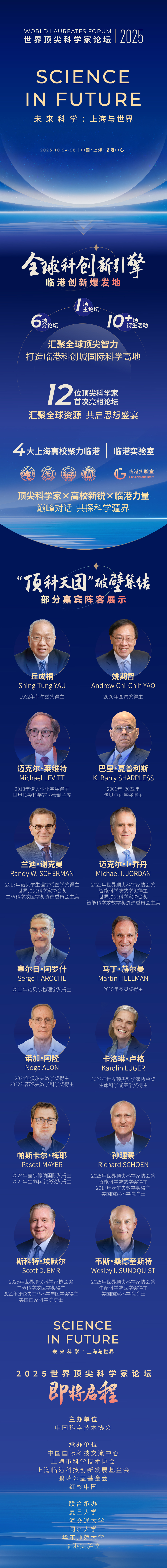 记者从10月16日在沪举行的2025世界顶尖科学家论坛新闻发布会上获悉,2025世界顶尖科学家论坛将于10月24日-26日在上海临港中心举办,主题为“未来科学:上海与世界(Science in Future)”。